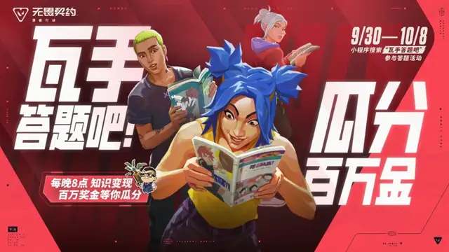 据张天所言,每天晚上8点前他们都会找个网速好的地方休息,因为要参加“瓦手答题吧”活动。这个活动从9月30日持续到10月8日,每天得分前1000名都会有100元的红包,且其他参与答题的玩家也可以获得各种游戏内外奖励,总价值超百万。